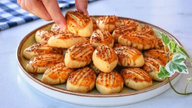 Bezelerin üzerine bastırıp genişletelim ve iç harcını ekleyelim. Üzerini kapatıp 15 dakika bekletelim.