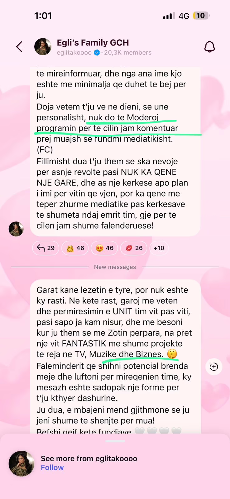 Megjithatë, përmes një reagimi të drejtpërdrejtë ndaj ndjekësve të saj, Egli ka mohuar kategorikisht këto zëra. Ajo theksoi se nuk do të jetë moderatore e “Big Brother VIP Fan Club” dhe se gjithçka ka qenë thjesht zhurmë mediatike, pa asnjë bazë reale apo angazhim nga ana e saj.