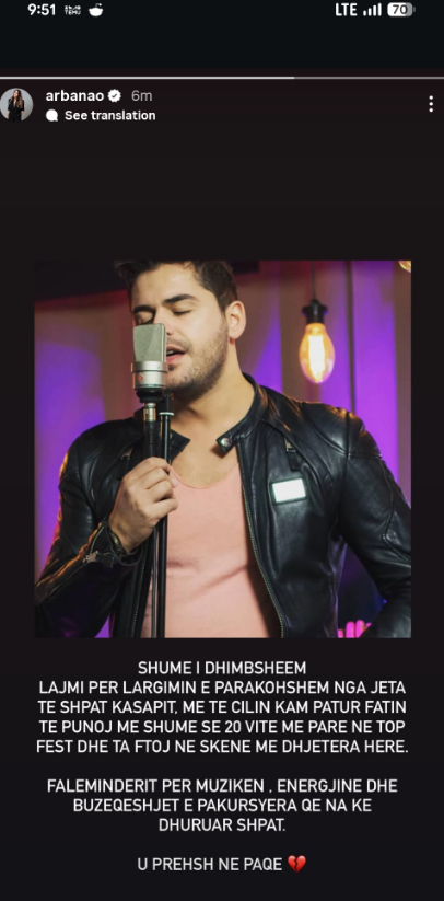 Ky mesazh i ndjerë i moderatores tregon vlerësimin dhe respektin për artistin që la gjurmë në skenën shqiptare me hitet e tij të paharrueshme dhe energjinë pozitive.