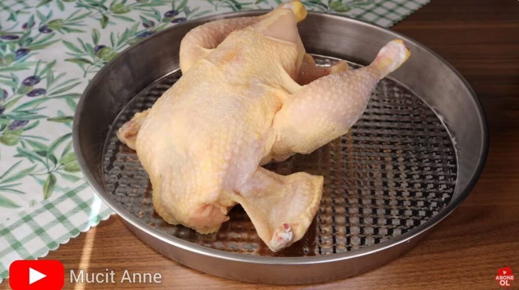 Tavuğun üzerine tuz döküp elimizle ovuşturarak her yerine yayılmasını sağlayalım.